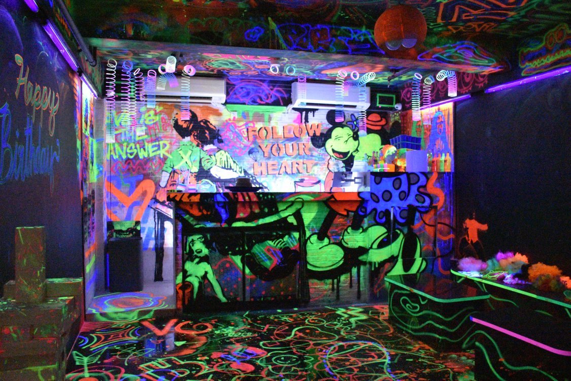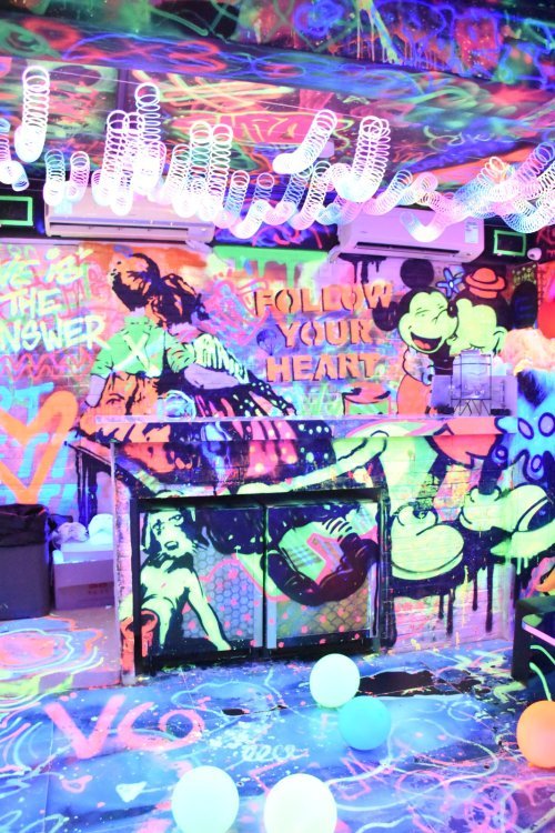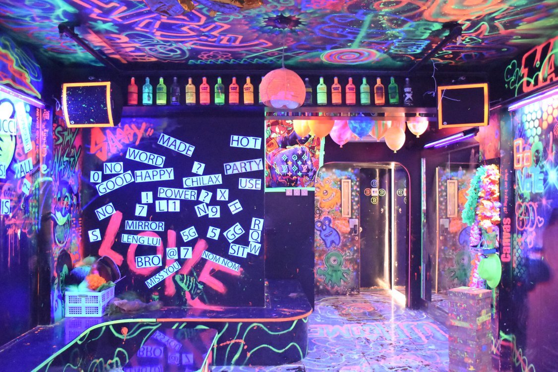 Chalk Studios is an outdoor/indoor private party venue located in the heart of Lan Kwai Fong reserved only for exclusive private parties. Inside of Chalk Studio is a blacklight party room that allows your group to draw all over the walls with blacklight chalk and play/dress up under black light.