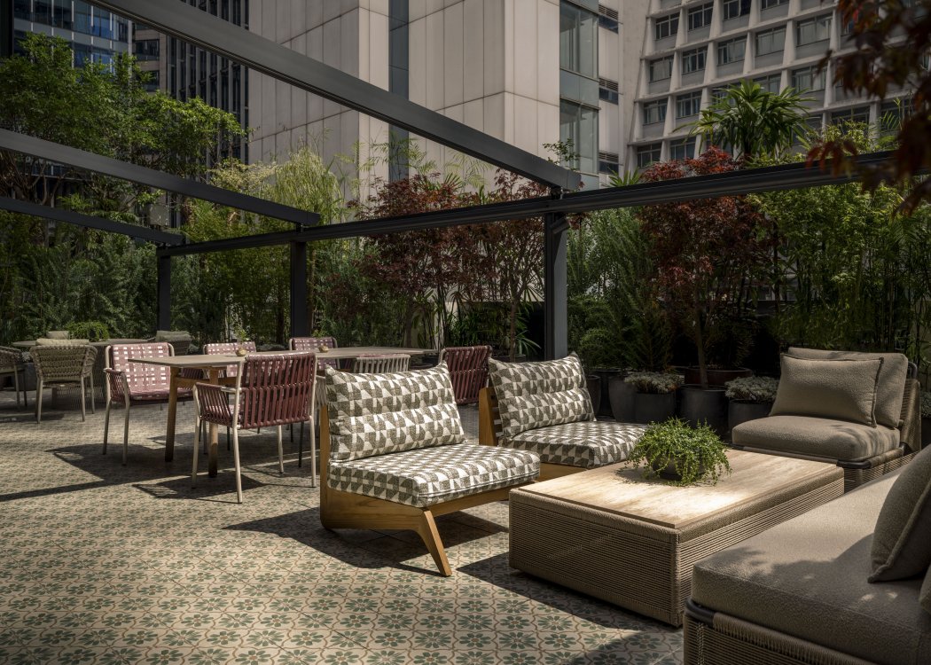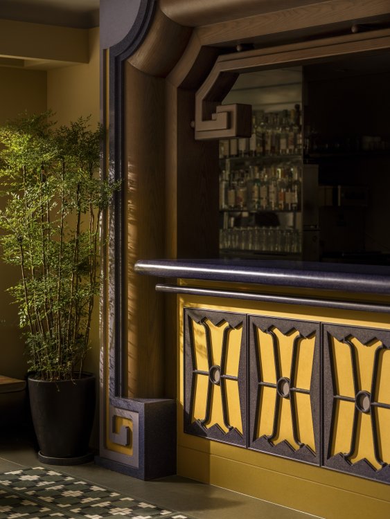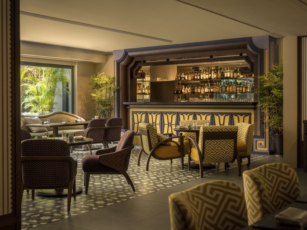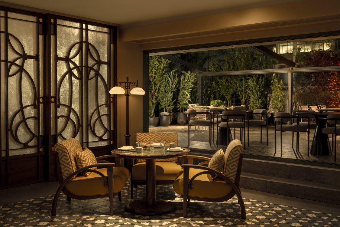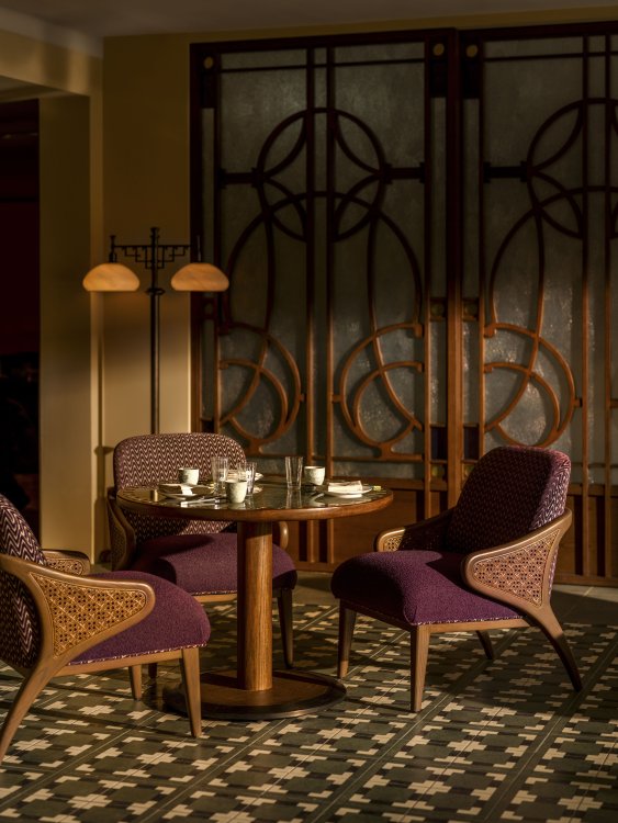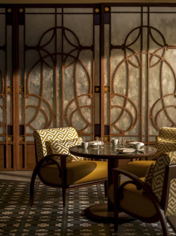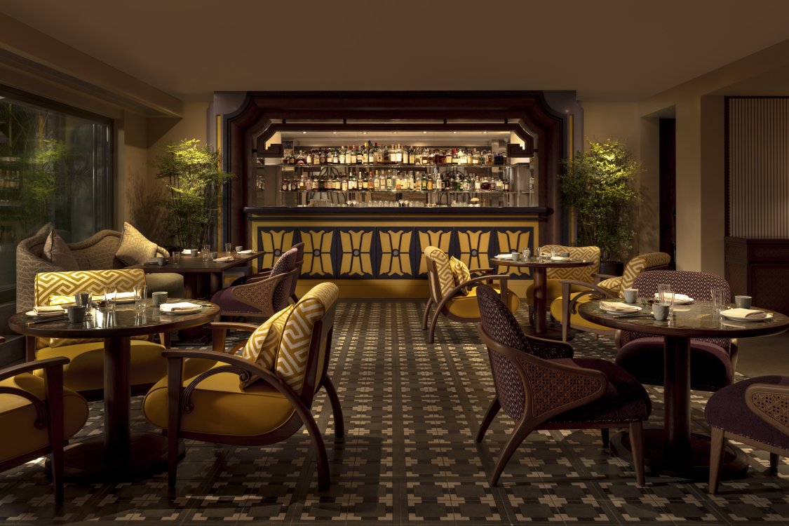 Duddell’s has been reimagined by internationally acclaimed designer André Fu into a contemporary art collector’s maison. Drawing from Lingnan architecture and the 1920s Diao Lou watchtowers, the duplex interior features chinoiserie-inspired pendants, stained-glass screens, and layered symmetry in a palette of pistachio green, mineral blue, and buttery yellow, set against terrazzo, stained oak, and stucco.