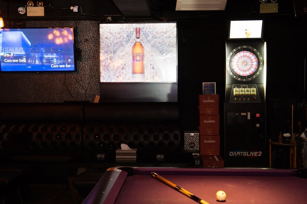 Equipped with American pool table and electronic dart machine